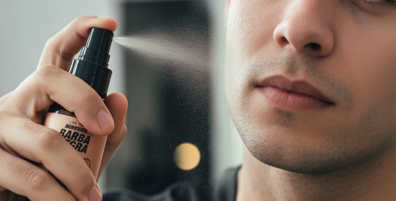Aplicar 5 jatos duas vezes ao dia (uma de dia e outra à noite) na região da barba em que deseja o crescimento.