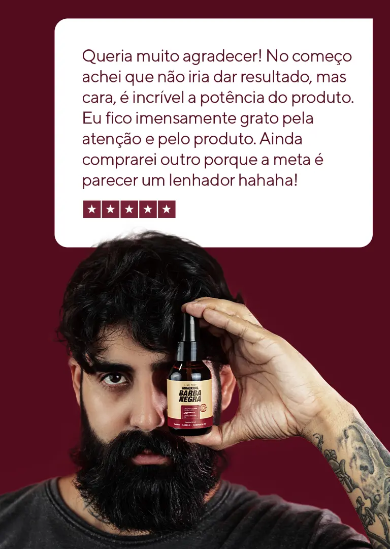 Barba Negra é cientificamente comprovados com uma eficácia de 97%, trata o preenchimento e crescimento de barba, cabelo e sobrancelha.
